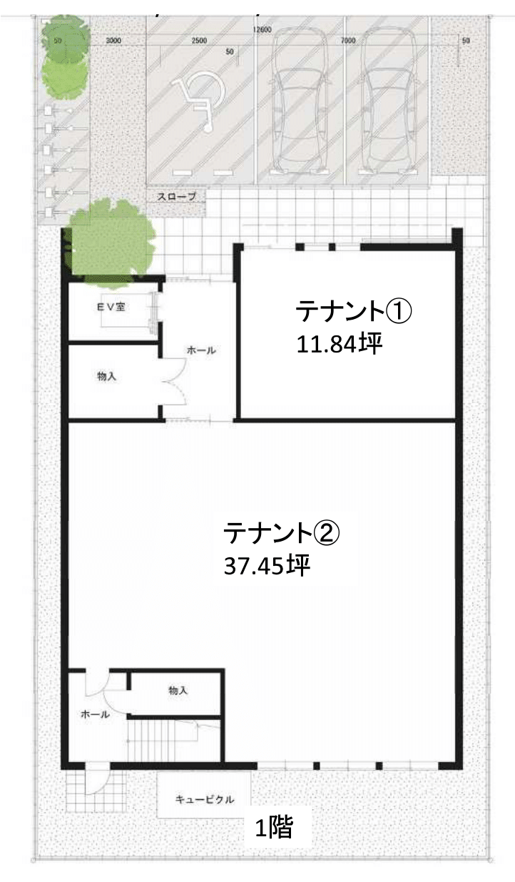 <1F>①11.84坪 ②37.45坪 <2F>③49.30坪 <3F>④49.30坪